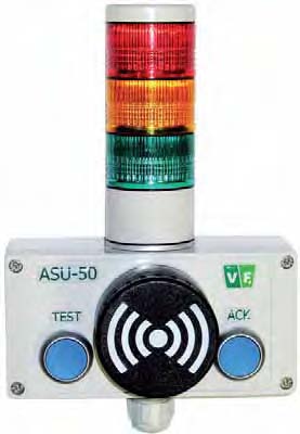 ASU-50 chỉ ra trạng thái vận hành của máy đo/ đầu dò, 2 đèn hiển thị và chuông báo với nút bấm (3 đèn có thể được phát sáng bằng nút bấm).